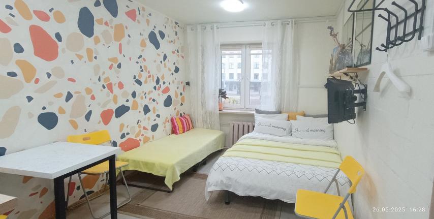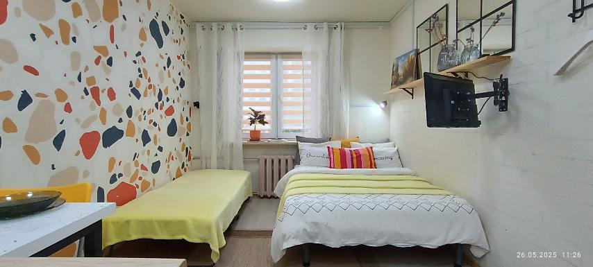Уютное местечко напротив универа Кулешова. Рядом с Центром Могилёва Подходит для студентов, командированых, туристов, романтических встреч. Два раздельных спальных места. 2+1. Для удобного проживания все есть. Wi-Fi, смартТВ, посуда, свежее белье, два полотенца каждому гостю, шампунь, жидкое мыло, фен, утюг, доска, чай, сахар, соль, масло. Стиральная и сушильная машина.