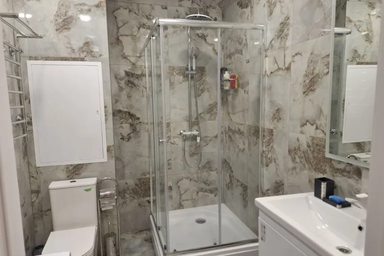 Беспроводной интернет Wi-Fi, Телевизор, Домофон, Полотенца, Кабельное/спутниковое телевидение, Кондиционер, Постельное бельё, Мыло, Туалетная бумага, Стиральная машина, Кофе, чай, Утюг, Фен, Застеклённый балкон/лоджия, Душевая кабинка, Автономный подогрев воды (бойлер/колонка), Холодильник, Микроволновая печь, Посуда